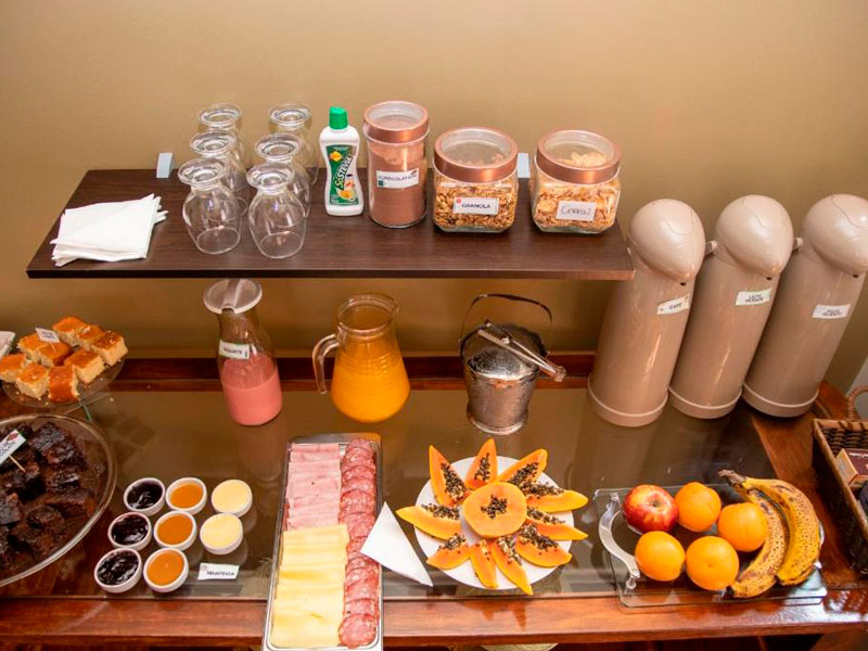 Nosso café da manhã é atrativo até pelo cheiro, com um pão caseiro e um bolinho novo todas manhãs, para que cada dia seja tratado com singularidade.